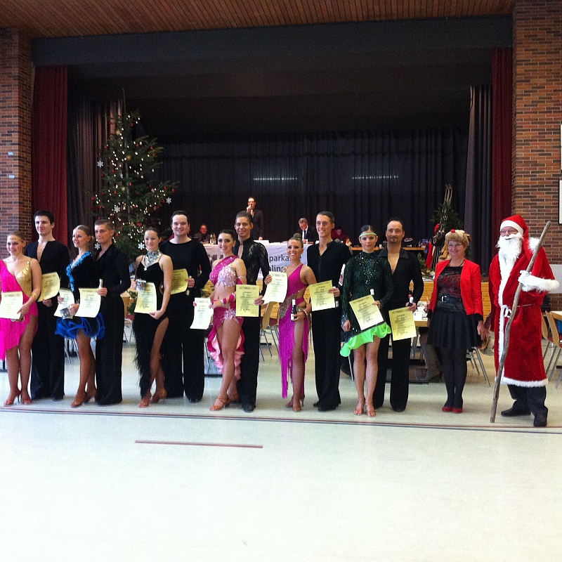 Ausgerichtet wurde das Adventsturnier in der weihnachtlich geschmückten Gemeindehalle in Waiblingen durch den TSC Staufer-Residenz Waiblingen. Den Beginn machten Christine Schuster und Florian Schweitzer in der Hauptgruppe C Latein. In der Vorrunde konnte das Paar die Wertungsrichter von sich überzeugen und erreichte das aus sechs Paaren bestehende Finale. In diesem aktivierten die beiden Tänzer nochmals alle Kräfte und holten sich am Ende mit guter Technik und positiver Ausstrahlung den dritten Platz und die damit verbundene für den Aufstieg wichtige Platzierung.