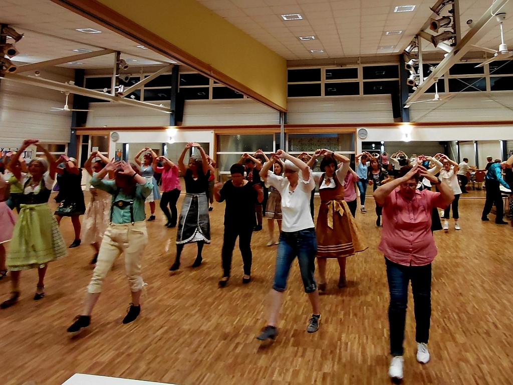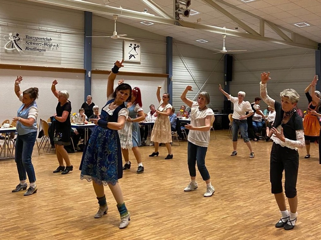 So auch auf der Dirndlparty 2025, die am Samstag den 18.10.2025 vom Tanzsportclub ausgerichtet wurde. Zahlreiche Tänzerinnen und Tänzer, Tanzpaare und Modern Line Dancerinnen kamen, um das Tanzbein zu schwingen. Die Partygesellschaft startete mit dem Zillertaler Hochzeitsmarsch, gefolgt von zahlreichen Tanzrunden mit aktueller Partymusik, darunter auch alpenländische Stimmungslieder. In einer kurzen Tanzpause gab es leckere Pizza. Anschließend standen Standard- und Lateintänze; Boogie, Twist und BossaNova aus den 50er Jahren, Swingtänze oder eine Merengue auf dem Programm.