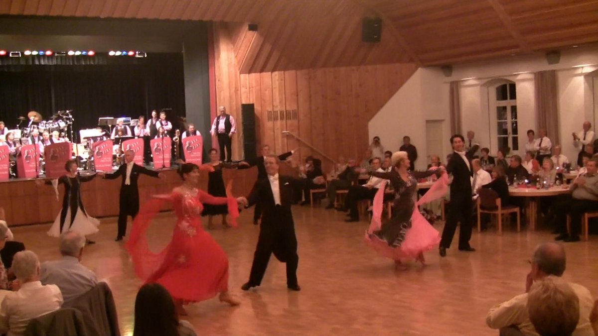 Am vergangenen Samstag, den 8. November 2009, veranstaltete die Big-Band der Musikfreunde Schlaitdorf in der wunderschönen und mit ca. 250 Personen gut besuchten Melchiorhalle in Neckartenzlingen eine Tanzveranstaltung der besonderen Art. Anstatt der sonst üblichen Discomusik spielte die 20 „Mann und Frau“ starke Big-Band Tanz-Musik vom Feinsten – und zwar eine bunte Mischung aus Latein- und Standard-Tänzen. Und das tanzbegeisterste Publikum füllte die Tanzfläche vom Abend bis in die frühen Morgenstunden. Das Higlight des Abends setzten jedoch Paare des TC Schwarz-Weiß Reutlingen. Enzo Hahn und Silke Link begannen die TC-Show mit einer Samba, einem Cha Cha Cha und einer Rumba. Das Publikum ging begeistert mit und verabschiedete die Beiden mit lang anhaltetendem Beifall in die Garderobe. Im zweiten Block des Schauauftritts kam die neu formierte Wiener-Walzer-Formation des TC zum Einsatz. Neu formiert deshalb, weil eigentlich bei dieser Formation Heinz und Margret Cierpka mittanzen sollten. Da Heinz aber von seiner Rückenoperation noch nicht voll genesen war, sprang für ihn dankenswerter Weise unser Clubtrainer Rolandas Trembo in die Bresche. Das Publikum begleitete mit begeistertem Applaus die auf den Walzer Wein, Weib und Gesang von Johann Strauß II getanzte Formation mit den Paaren Rolandas Trembo und Margret Cierpka, Peter und Monika Neumaier, Willi Gaiser und Sigrid Alex sowie Kurt und Heide Nau. Zum Abschluss der TC-Schauveranstaltung tanzten zuerst Peter und Monika Neumaier einen langsamen Walzer, danach Enzo Hahn und Silke Link einen Jive auf die Livemusik der Big-Band. Sie setzten damit einen schwungvollen Schlusspunkt unter eine gelungene und vom Publikum begeistert aufgenommene Präsentation des TC Schwarz-Weiß Reutlingen.