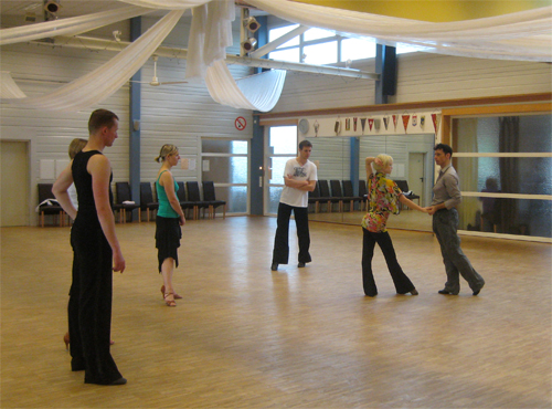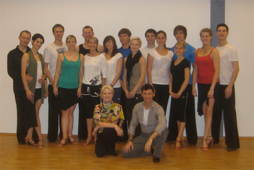 Es ist Donnerstag, der 13.5.2010, 15 Uhr und der Tanzsaal des TC Schwarz-Weiß Reutlingen ist gefüllt mit 15 jungen Latein-Tänzern, die sich aufwärmen. Und warten. Sie warten gespannt auf die zwei Personen, bei denen sie heute 3 Stunden Training haben:Anna Kravchenko und Jesper Birkehoj, die deutschen Meister in den latein- amerikanischenTänzen 2005-2008 und deutsche Meister Profi-Kür Latein 2010. Und endlich sind sie da. Auf dem Programm steht die Rumba, um nicht nur einige neue Schritte zu lernen, sondern auch um genauer auf die Führung einzugehen. Das Thema Partnering und Gefühl wird groß geschrieben, sollen die Tanzpaare doch eine Einheit bilden, die musikalisch zur Musik tanzt und nicht nur auf Schnelligkeit achtet. Nachdem die Übungsfolge sitzt, wird genau an diesem Partnering gearbeitet- Anna Kravchenko und Jesper Birkenhoj tanzen nicht nur vor, sondern erkären den Tänzern genau was sie von ihnen sehen wollen, und je öfter es versucht wird, desto mehr klappt es auch. Nach 2 Stunden Training wird dann eine kleine Pause eingelegt und die Trainer und Tänzer können sich am „Sportler-Büffet“ stärken, das aus viel Obst, Gemüse und Müsliriegeln von unserem Jugendausschuss organisiert wurde. Nach dieser kleinen Stärkung kann es weitergehen, Anna übernimmt die Frauen, Jesper kümmert sich in der anderen Hälfte des Saales um die Männer. Während die Männer eine vertiefte Lektion zur Führung bekommen, geht es bei den Frauen um Posen, Blicke und Ausdruck. Der Höhepunkt des Trainings ist am Schluss die Rumba von Anna und Jesper, in der sie ihre Klasse zeigen und bei der man ganz deutlich ihre große Liebe zum Tanzsport sieht. Das Training endet schließlich mit viel Applaus und Dankesworten an die beiden Trainer für den super Tag. Umgezogen und frisch gemacht, fängt anschließend der gemütliche Teil des Tages an. Bei leckerer Pizza im Cafe Restaurant des TC Schwarz-Weiß erzählen Anna und Jesper von ihrem Alltag im Profilager und beantworten jegliche Fragen der Tänzer. Wir bedanken uns noch einmal recht herzlich bei Anna und Jesper, die uns an diesem Trainingstag viel beigebracht haben und uns große Freude bereitet haben. Zusätzlich danken wir unserem Jugendwart, der diesen besonderen Trainingstag erst möglich gemacht hat.