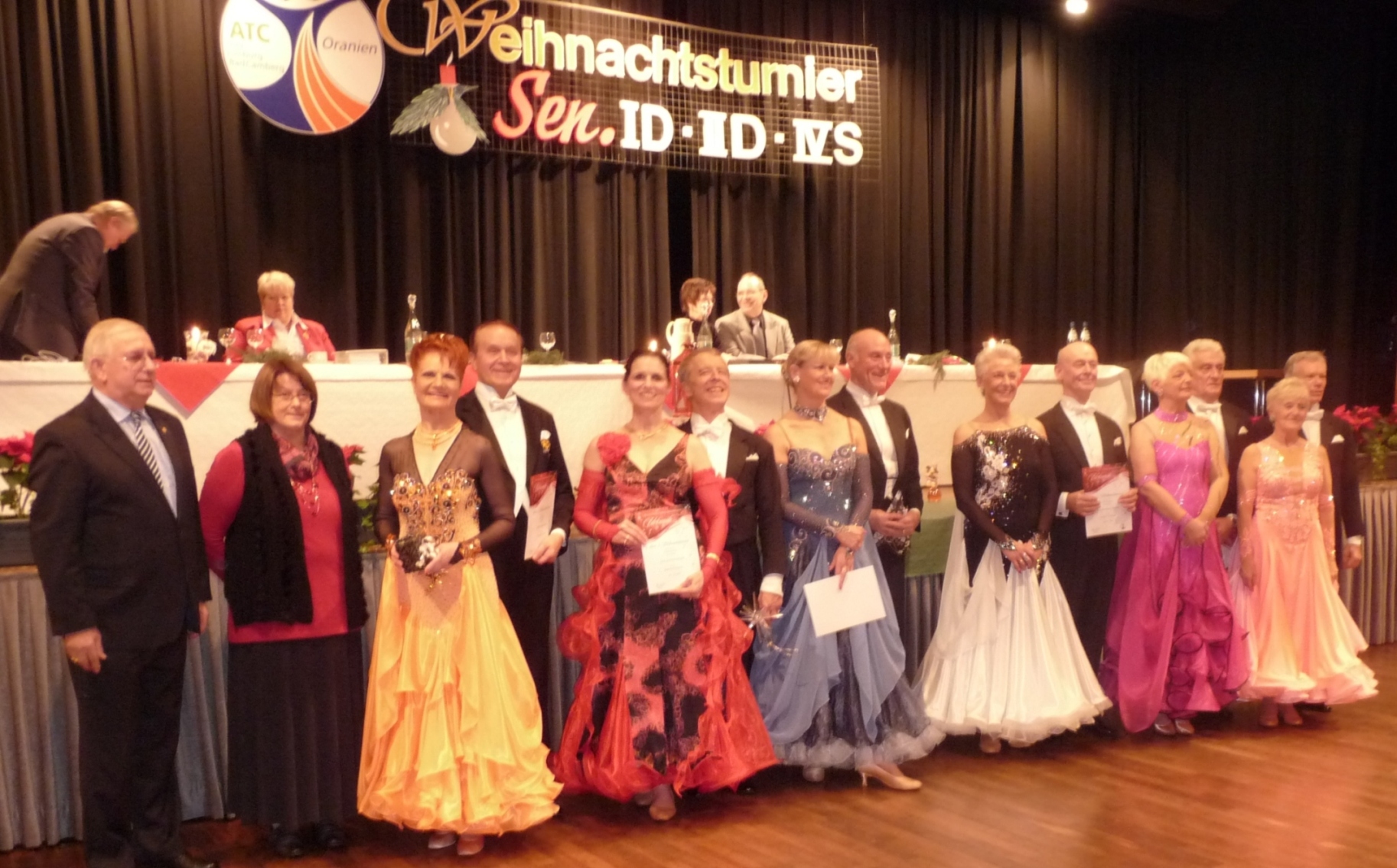 Im sehr schönen Kursaal von Bad Camberg fand am 17.12.2011 das Weihnachtsturnier des ATC Oranien Diez-Limburg-Bad Camberg für die SEN IV S statt. Für Monika und Peter Neumaier war es das letzte Turnier in 2011 und sie haben es im Nachhinein nicht bereut, die lange Fahrtstrecke auf sich genommen zu haben. Als jeweils zweitbestes Paar tanzten sie sich problemlos über Vor- und Zwischenrunde in die Endrunde der sechs besten Paare. Dort belegten sie ebenfalls unangefochten den 2. Platz von insgesamt 18 Paaren. Wir gratulieren herzlich zu diesem Erfolg.