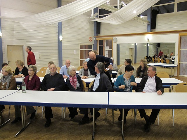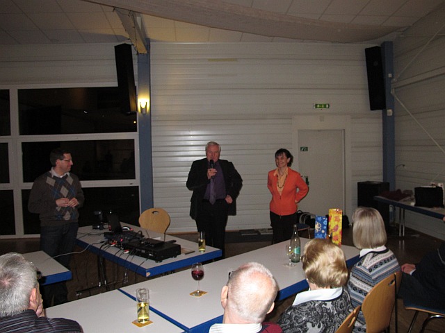 Nach so einer schönen Show, die mit enormer Personen- und Faktenkenntnis von der „Chefin“ Lilly Neumann kommentiert wurde, durfte der Abend nicht einfach sang- und klanglos beendet werden. Es schloss sich ein gemütlicher Ausklang mit einem Abendessen an, bei dem es wieder viel zu erzählen gab. Vorher bedankte sich Andreas Neumann mit einem Weinpräsent bei Dietrich Thöns und dessen Frau Erika sowie bei Franz Tesch, der die Vorführgeräte beim Kreismedienzentrum besorgt hatte.
