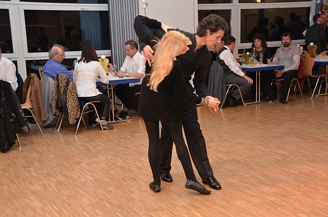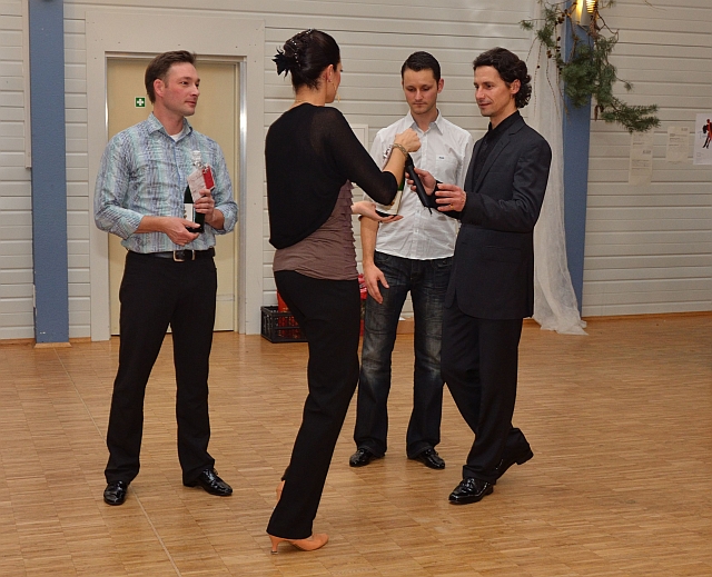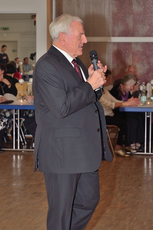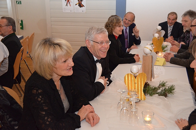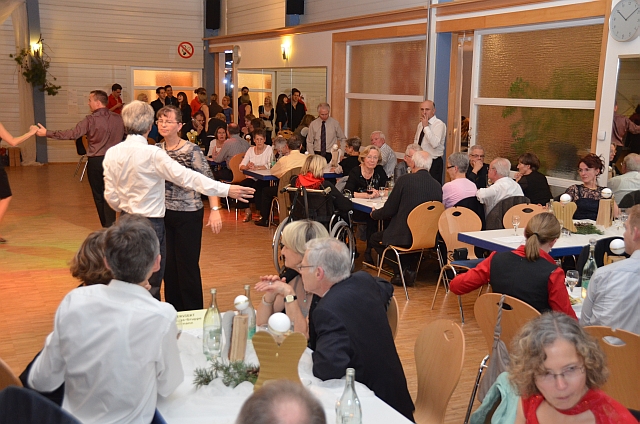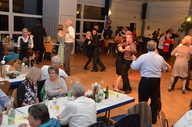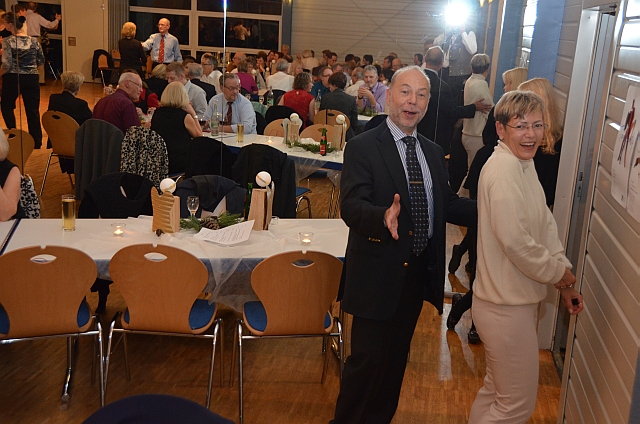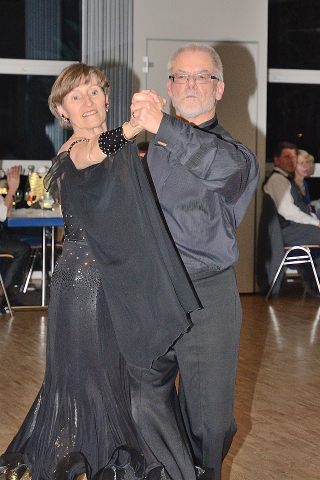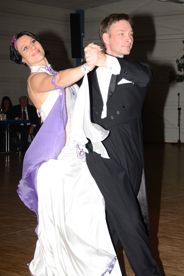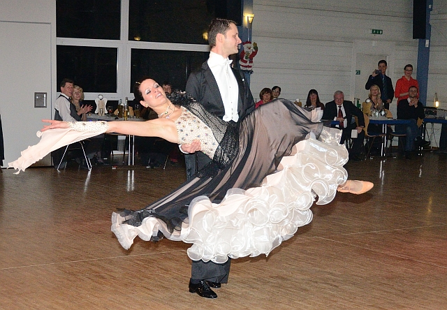 Über ein volles Haus freute sich der erste Vorsitzende des Tanzsportclubs Schwarz-Weiß, Walter Greiner, bei der diesjährigen Weihnachtsfeier im Tanzsport-Centrum zu der er das Ehrenmitglied Thomas Czinczoll mit seiner Frau Nicole begrüßen konnte. Sein besonderer Dank galt den vielen Helfern, die den Saal sehr stimmungsvoll geschmückt hatten. Eröffnet wurde das Programm von Dr. Gerulf Mertens, der am Klavier einfühlsam mit poetischen Tonbildern des Komponisten Edvard Grieg die diesjährige Weihnachtsgeschichte umrahmte. Die Geschichte „vom Engel, der nicht singen wollte“ wurde von der zweiten Vorsitzenden Gerti Götz vorgetragen und brachte sicher den einen oder anderen zum Nachdenken.Traditionell im Programm der Weihnachtsfeier sind die Schautänze der Turnierpaare, die in diesem Jahr aufgestiegen sind und da war allerhand geboten. Moderiert wurde abwechselnd von Bruno Bohn und Walter Greiner.Den Reigen eröffneten Wolfgang und Petra Hesse (Aufstieg in SEN III C Standard), die mit Markus Vogel und Silke Weinmann ( Aufsteiger in HGR II B Standard) ihr Können zeigten, bevor Alexander und Marina Engel (Aufstieg in HGR II A Standard) und Bruno und Monika Bohn (Aufstieg in HGR II S Standard) ihre Schau darboten. Bei den Shows wurde Tanzen vom Feinsten geboten und die Paare bewiesen, dass sie zu den Besten im Lande in ihrer jeweiligen Leistungsgruppe gehören. In den Pausen zwischen den Showblöcken nutzte das fachkundige Publikum ausgiebig die Gelegenheit, selbst zu tanzen. Nach Übergabe der Aufstiegsprämien durch Walter Greiner begeisterten der amtierende Landesmeister (SEN IV S Standard) Heinz und Margret Cierpka mit ihrer Interpretation eines Langsamen Walzers. Vorgestellt wurden dann die Aufsteiger in den Lateingruppen Melanie Märklin-Stradinger, die mit ihrem Partner Adrian Schatz, der leider nicht anwesend sein konnte, in die HGR B Latein aufgestiegen ist sowie Viktor Bauer und Sabrina Braun (Aufstieg in II B Latein) und besonders auch der Vizelandesmeister bei den SEN IV S Standard, Peter und Monika Neumaier. Zum Schluss der Tanzdarbietungen gaben Heinz und Margret Cierpka noch einen schwungvollen Wiener Walzer als Zugabe.