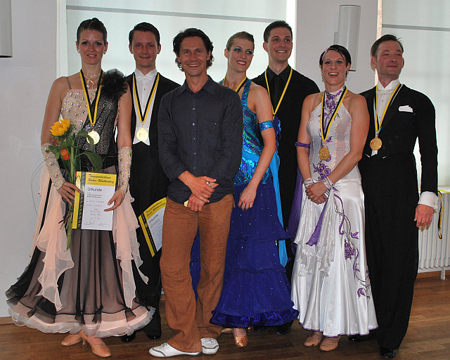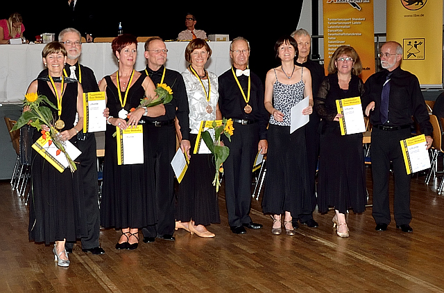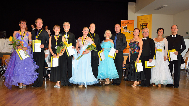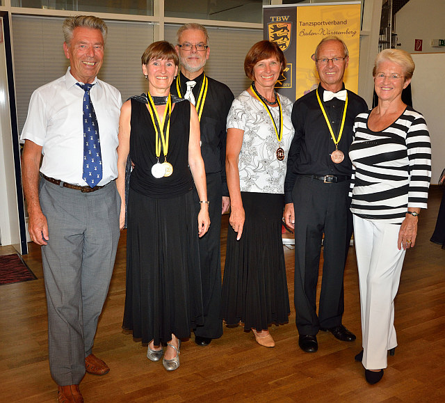 Bei den Senioren III D erreichten Wolfgang und Petra Hesse mit einstimmigem Votum der Wertungsrichter den Landesmeistertitel. Sie stiegen damit in die nächst höhere Klasse III C auf. Vom Erfolg beflügelt sind sie auch hier angetreten und erreichten auf Anhieb den zweiten Platz. Damit sicherten sie sich den Titel des Vizelandesmeisters. Über eine Bronzemedaille bei den Senioren III D konnten sich Dr. Eberhard und Gerti Götz freuen. Trainiert werden die beiden Paare neben Rolandos Trembo von Margret und Heinz Cierpka, die mächtig stolz auf die Erfolge ihrer Schützlinge waren.Einen schönen Erfolg gab es auch für Monika und Peter Neumaier. Diese waren in der für sie jüngeren Altersklasse Senoren III S Standard angetreten und erreichten einen 9. Platz von 26 Paaren.
