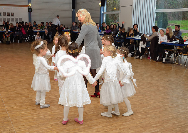 Wieder einmal war das weihnachtlich dekorierte Clubheim des Tanzsportclubs Schwarz-Weiß Reutlingen gerammelt voll, als zur Kinderweihnachtsfeier am Nachmittag des zweiten Advents eingeladen wurde.Die verschiedenen Kindergruppen unterschiedlicher Altersklassen hatten sich zusammen mit ihrer Trainerin Fee Dürr auf diese Feier vorbereitet, um verschiedene Tanzchoreographien zu zeigen. Das taten sie mit Begeisterung und bekamen viel Beifall. Die Auftritte der Kinder wechselten sich mit Tanzshows der Latein- und Standardturnierpaare ab. Diese begeisterten nicht nur die Erwachsenen im Saal, auch die Kinder waren fasziniert und staunten über die toll gekleideten Tänzerinnen und Tänzer. Sogar eine Breitensportgruppe hatte mit einem Line-dance einen Auftritt. Zum Abschluss des Programms tanzten die Kinder vergnügt mit den Erwachsenen.Überraschungsgast der Feier war dann der Nikolaus, der mit einem großen Sack angerückt kam, um jedem Kind einen großen Schokoladennikolaus zu geben. Beinahe wurde er dabei überrannt.