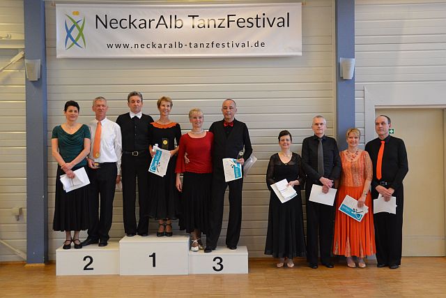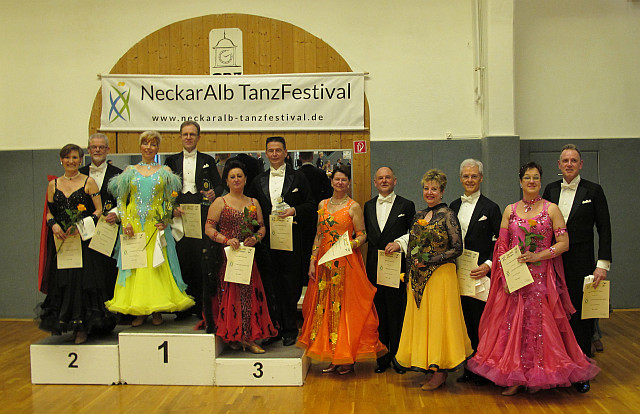 In der Tanzsporthalle des TTC Rot-Gold Tübingen begann am Samstag das dritte NeckarAlb Tanzfestival, ein Gemeinschaftsprojekt des TTC Rot-Gold Tübingen und des TC Schwarz-Weiß Reutlingen. Insgesamt wurden 13 Turniere in verschiedenen Startgruppen angeboten an denen über 100 Turniertänzer teilnahmen. Bei diesem Festival durften die Turniertänzer des Tanzsportclubs Schwarz-Weiß natürlich nicht fehlen und sie tanzten sehr erfolgreich mit. Beim Turnier für SEN III A Standard holte sich das Turnierpaar Wolfgang und Petra Hesse einen klaren zweiten Platz. Bei den SEN IV S Standard siegten Peter und Monika Neumaier.