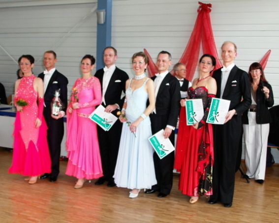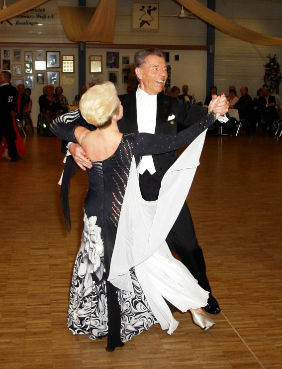 Mitreißender Tanzspaß bis nach Mitternacht, dazu wurde den begeisterten Tanzsportfans Turniertanz vom Feinsten geboten. Mit Spannung erwartet, standen die Endrunden überregional besetzter Turniere im Mittelpunkt des Abends. Bewertet wurden die Hauptgruppe C Latein (ab 19 Jahre) sowie die Senioren III S Standard (ab 55 Jahre). Die dabei zunächst nur passiv bewundernden Konsumenten der hohen Tanzkunst konnten in den Publikumsrunden zwischendurch dann auch selbst so richtig loslegen auf dem glatten Parkett.Viel Applaus für den Nachwuchs Schwung und gute Laune brachte der Nachwuchs des Vereins gleich zum Auftakt in den mit pastellfarbenen Stoffbahnen geschmückten Saal im Tanzsportzentrum. Nach fetzig getanzten Musicalausschnitten war den Kids der erste Applaus des Abends sicher.Glanz und Glamour erlebten Publikum und Jury im Wettkampf um die ersten Plätze bei den lateinamerikanischen Tänzen. Vor dem Auftritt Dehnübungen wie beim Leistungssport. »Es ist Leistungssport«, versichert Heinz Klein, verantwortlich für die Öffentlichkeitsarbeit des mehr als 400 Mitglieder zählenden Vereins. »Ein Quickstepp entspricht kräftemäßig in etwa einem 400-Meter-Lauf.« Still wird es im Saal, als die Wertungsrichter sich rund um die Tanzfläche platzieren. Die knappen, bonbonfarbenen Glitzerkleidchen der temperamentvollen Tänzerinnen zählen für die Unbestechlichen bei der Vergabe der Noten allerdings nicht, schmunzelt einer von ihnen. Der Juror konzentriert sich stattdessen auf Takt- und Rhythmusgefühl, Musikalität und Körpersprache der Tanzpaare. Keine leichte Aufgabe. Samba. Sechs Paare. Nur 1,5 Minuten getanzte Zeit. Dann Rumba, Cha-Cha-Cha, Jive - jeder Tanz hat seinen eigenen Charakter, erfordert spezielle Techniken. Mann und Frau zwischen Leidenschaft und Schmeicheln, Herausforderung und Kampf. Mit Spannung erwartet: die Platzierung. 1. Platz: Johannes Hofmann/Gisela Schieß (TTC Rot-Gold Tübingen), 2. Platz: Manuel Burkart/Carina Kögel (TTC München). Spannend auch das hochklassig besetzte Finale im Standardtanz der Senioren in der S-Klasse - »wie bei Mercedes - die Spitzenklasse eben«, lacht Heinz Klein. Hier sind auch die erfolgreichen Reutlinger Margret und Heinz Cierpka zu Hause, mit ihrem unverwechselbar eleganten Stil.Verschmolzen und schwerelos Wie Frühlingsblüten in Rosa, Hellrot, Blau und Weiß schweben die Damen im schwingenden klassischen Abendkleid am Arm ihrer schwarz befrackten Partner herein. Weiträumige Choreografien bei Walzer, Foxtrott oder Tango erfordern volle Konzentration und Kondition. Spritzig wie der Sekt im Glas: ein Quickstepp. Harmonisch scheinen die Paare miteinander zu verschmelzen, wirbeln über lange Distanzen scheinbar schwerelos über die Tanzfläche.Schließlich die Bewertung. Den ersten Platz ertanzten sich Gerd und Brigitte Lang vom TC Rot-Gold Würzburg. Platz Zwei ging an Gerhard und Elvira Otterbach, Schwarz-Weiß-Club Pforzheim. Reiner und Rosita Aust von der TSG 1862 Weinheim freuten sich über ihren dritten Platz. Die rauschende Ballnacht war jedoch noch lange nicht vorbei, denn der Funke war übergesprungen von den Experten auf die tanzbegeisterten Gäste im Saal. (GEA)