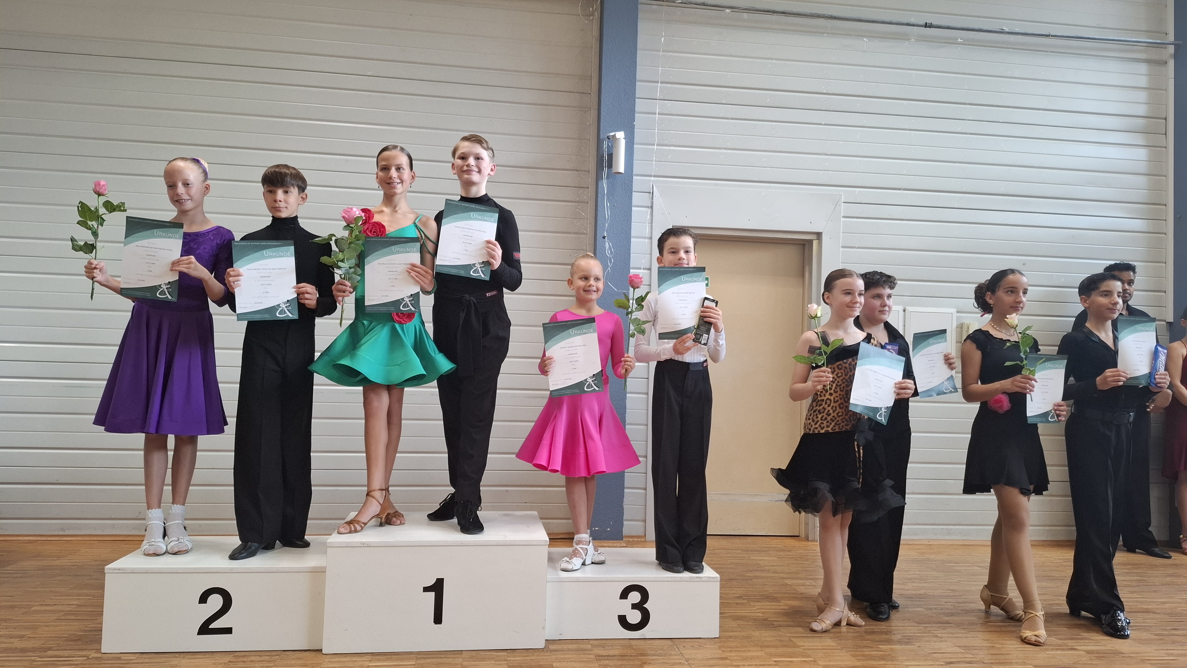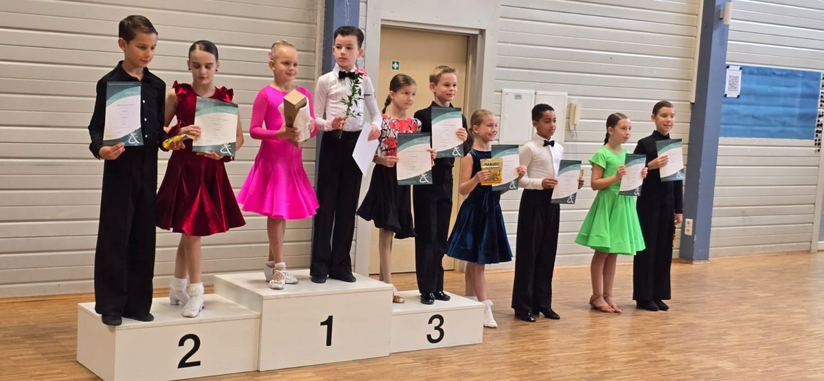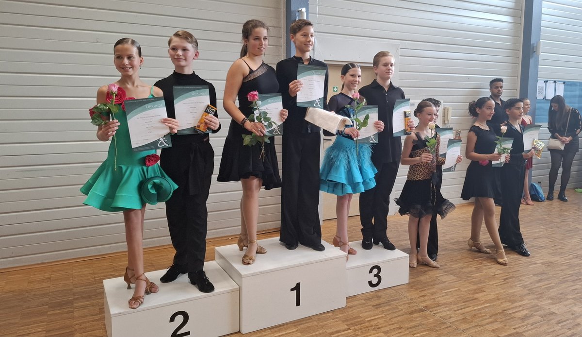 Daniel Engel und Madeleine Kreuzer erreichten bei ihrem Turnier der Kinder I/II D Latein den dritten Platz von fünf Paaren. Beim Turnier der Junioren I D Latein traten sie mit älteren – und größeren Tanzpaaren auf die Fläche. Trotzdem erreichten die beiden in ihren drei Tänzen Cha Cha Cha, Rumba und Jive den vierten Platz von fünf Paaren.
