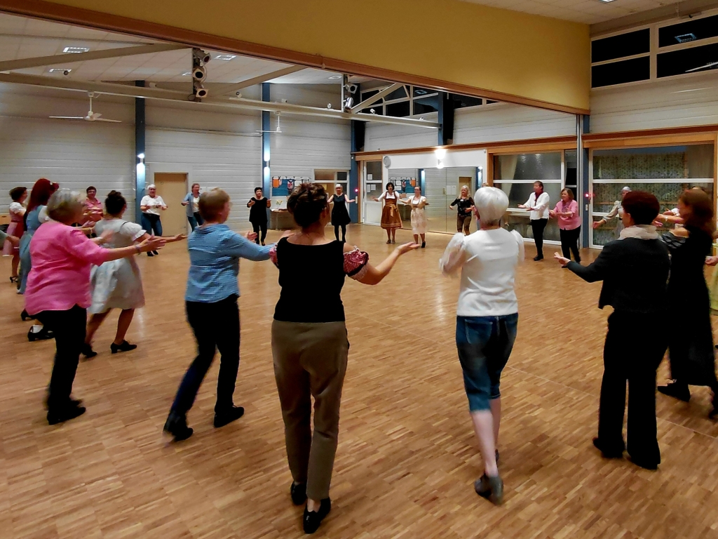 So auch auf der Dirndlparty 2025, die am Samstag den 18.10.2025 vom Tanzsportclub ausgerichtet wurde. Zahlreiche Tänzerinnen und Tänzer, Tanzpaare und Modern Line Dancerinnen kamen, um das Tanzbein zu schwingen. Die Partygesellschaft startete mit dem Zillertaler Hochzeitsmarsch, gefolgt von zahlreichen Tanzrunden mit aktueller Partymusik, darunter auch alpenländische Stimmungslieder. In einer kurzen Tanzpause gab es leckere Pizza. Anschließend standen Standard- und Lateintänze; Boogie, Twist und BossaNova aus den 50er Jahren, Swingtänze oder eine Merengue auf dem Programm.