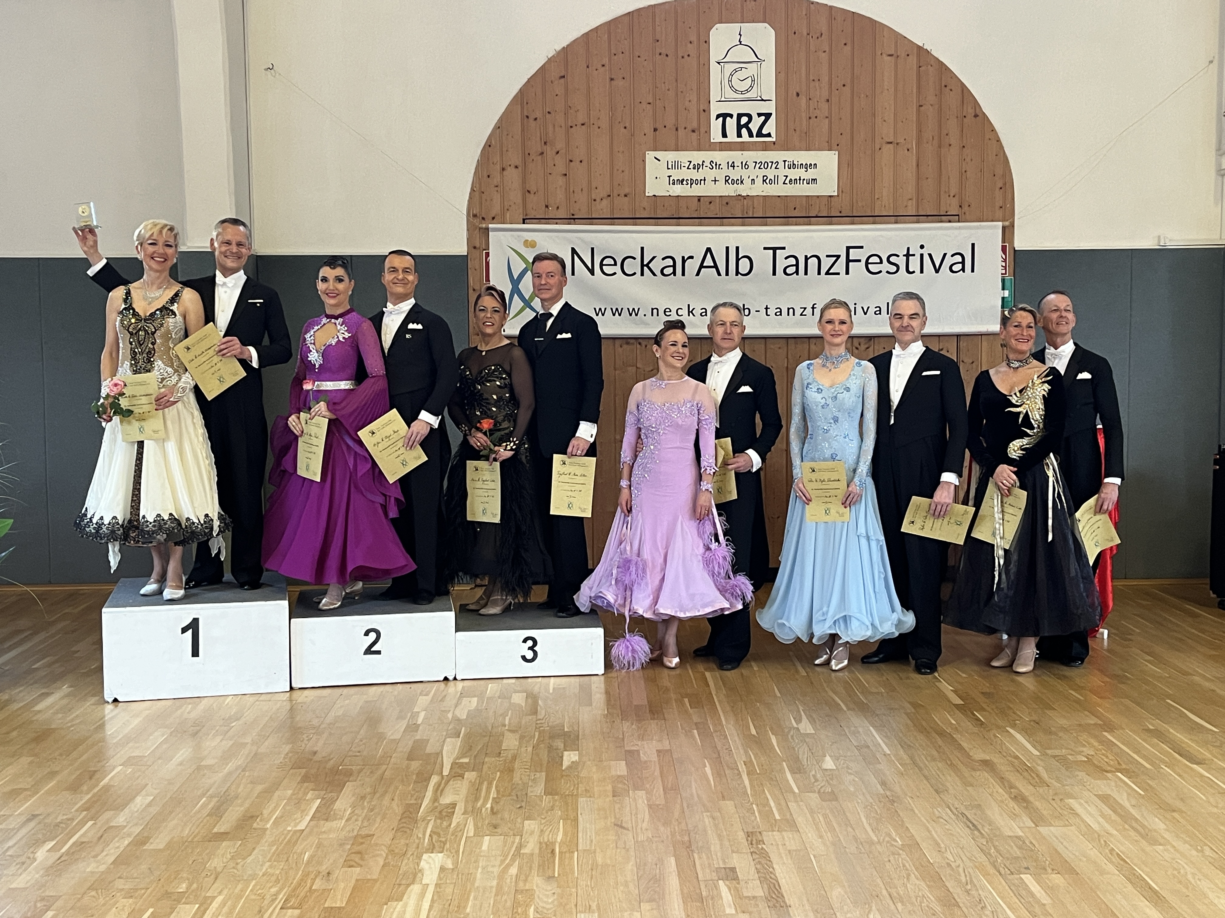 In der Klasse Masters III S Standard starteten vom TC Schwarz-Weiß Reutlingen die drei Paare Petra und Stefan Brandstetter, Beate Lever mit Gunther Scholl sowie Annette und Dieter Kuchenbecker.